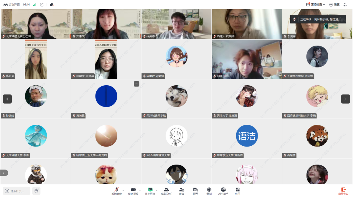 由教育部高等学校建筑类教学指导委员会风景园林专业教学指导分委员会主办、澳门新葡京娱乐场 承办“2025年全国风景园林专业10+高校联合毕业设计”活动,以“南都繁会,古市新生——南京汤山古集镇片区景观规划设计”为主题的前期调研与初步构思汇报交流会,于2025年1月19日(星期日)上午9时,在云端顺利拉开帷幕。共有来自17所高校的130余名师生代表参加活动。通过线上平台分组汇报与点评的方式展现了他们对场地的独到见解和深度思考。