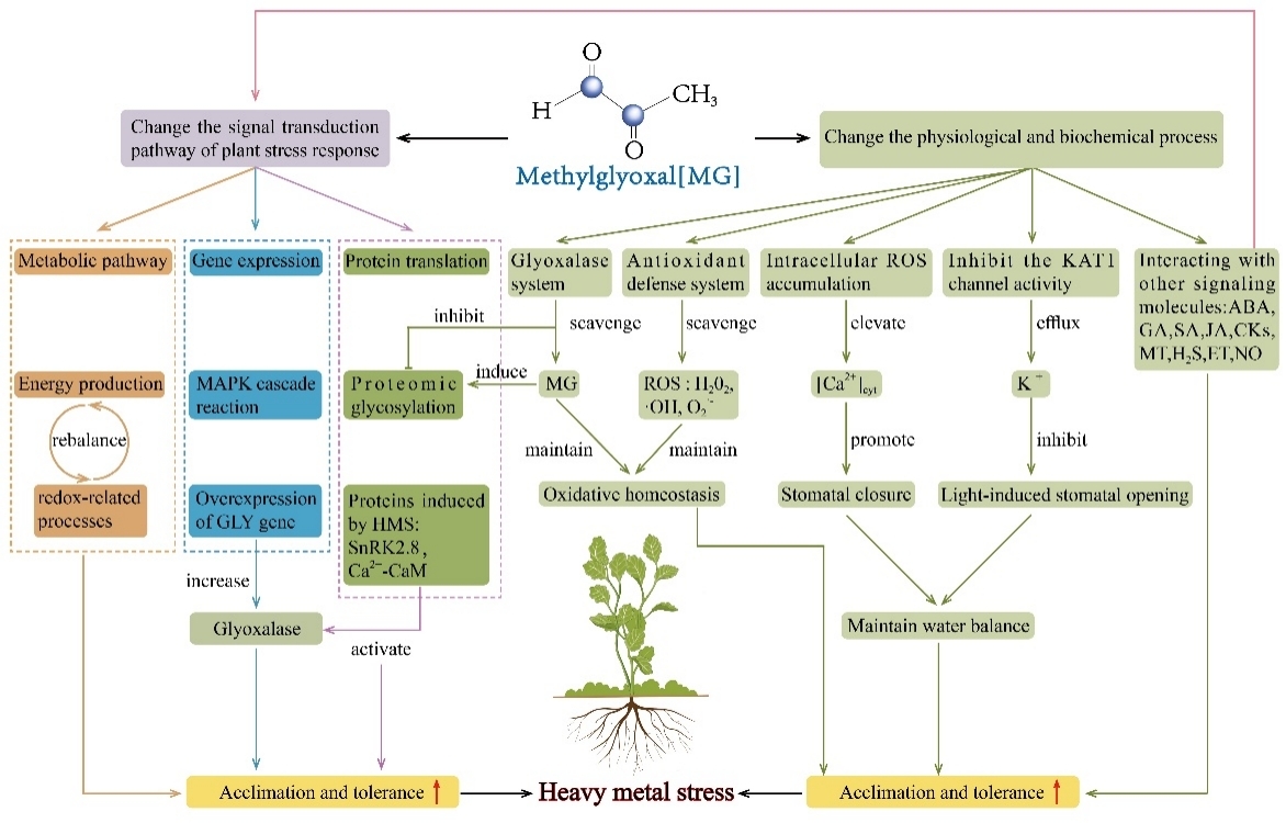 Fig.1 MG作为信号分子调控植物重金属胁迫的作用机制